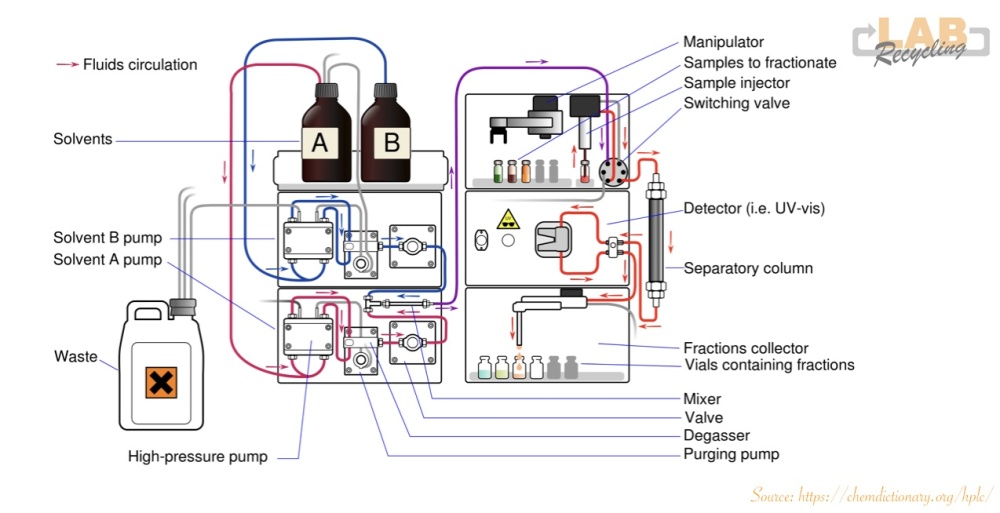 The basic purposes for using HPLC are for identifying, quantifying and purifying the individual components of the mixture. A HPLC is generaly used in field of biochemistry an analytical chemistry.